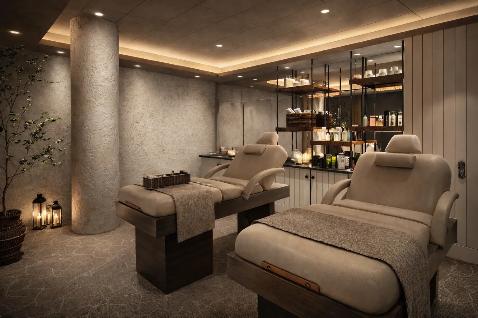 Key design elements include reclaimed wood, woven fabrics, and a cascading rope installation inspired by the region’s maritime heritage. Custom furniture, rustic hardware, and original artwork enhance the ambiance, creating a perfect blend of elegance and modern comfort. The Spa at MGM Springfield offers a refined yet relaxing experience, embodying the MGM Resorts philosophy of creating immersive, luxurious environments for its guests.