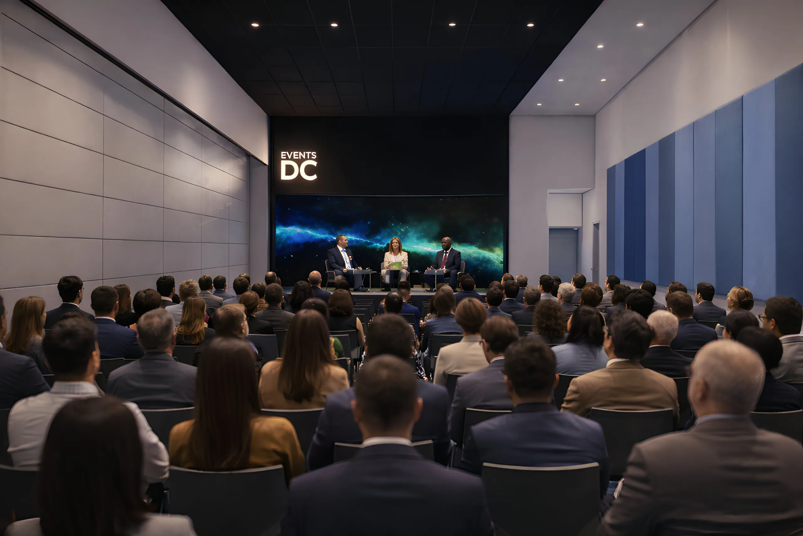 Events DC is the premier host of conventions, entertainment, sporting and cultural events in the nation’s capital. In need of more production studio space, Events DC engaged MOYA in the design to convert approximately 3,500 square feet of existing meeting room space into a state-of-art virtual production studio and support space including a green room, control room, reception area and flex space. The design includes a fit out of the space with a stage, LED green screens, acoustical attenuation, audio/visual equipment, selective upgrades to finishes and general lighting, IT infrastructure, furnishings, HVAC, and MEP elements.