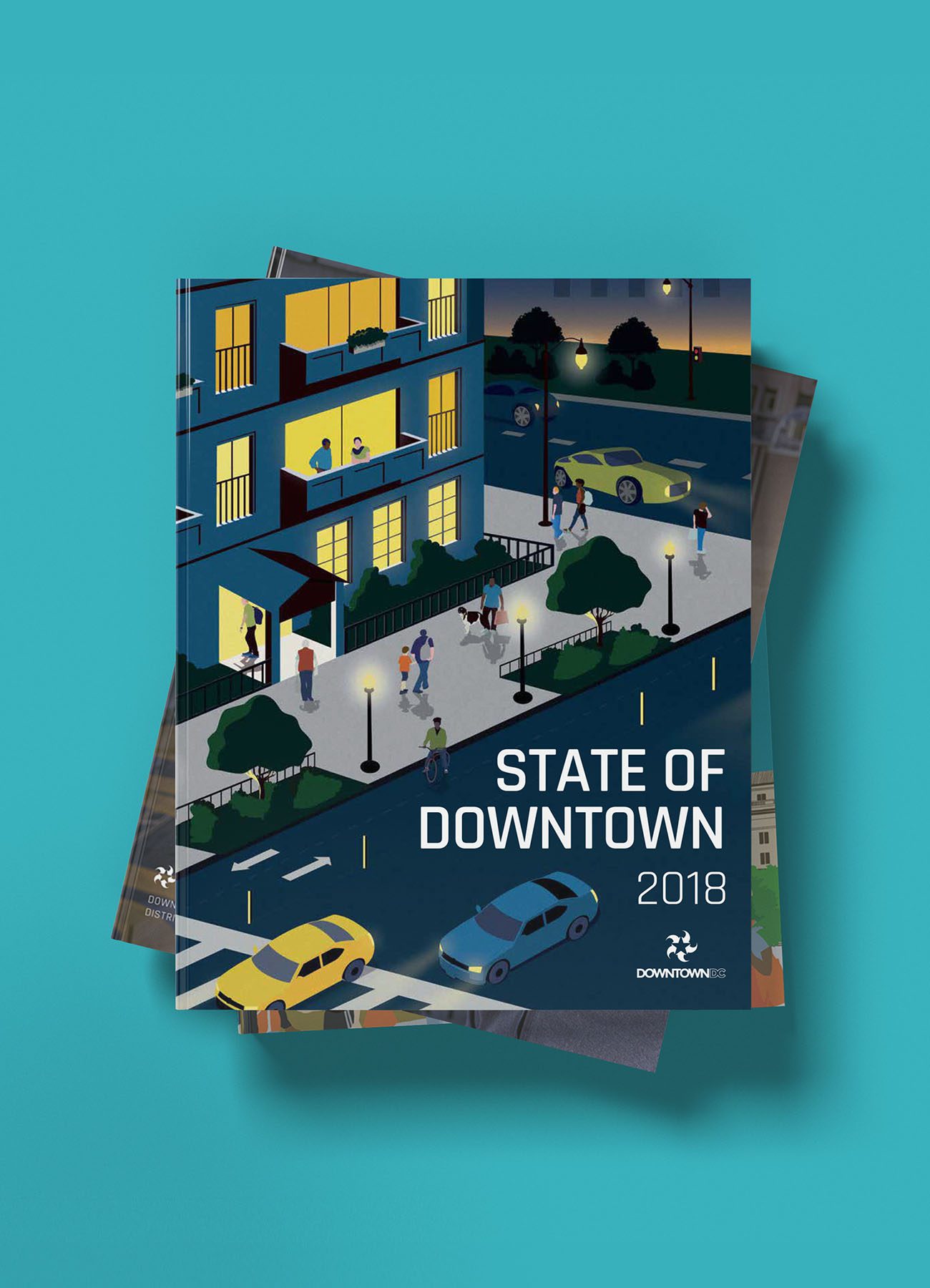 We led the editorial design and creative direction of the SOD report for four years, creating custom illustrations and easy-to-read charts and data visualizations for this comprehensive report detailing the downtown economy. Full-page custom infographics activate and beautify the data for a highly visual experience.