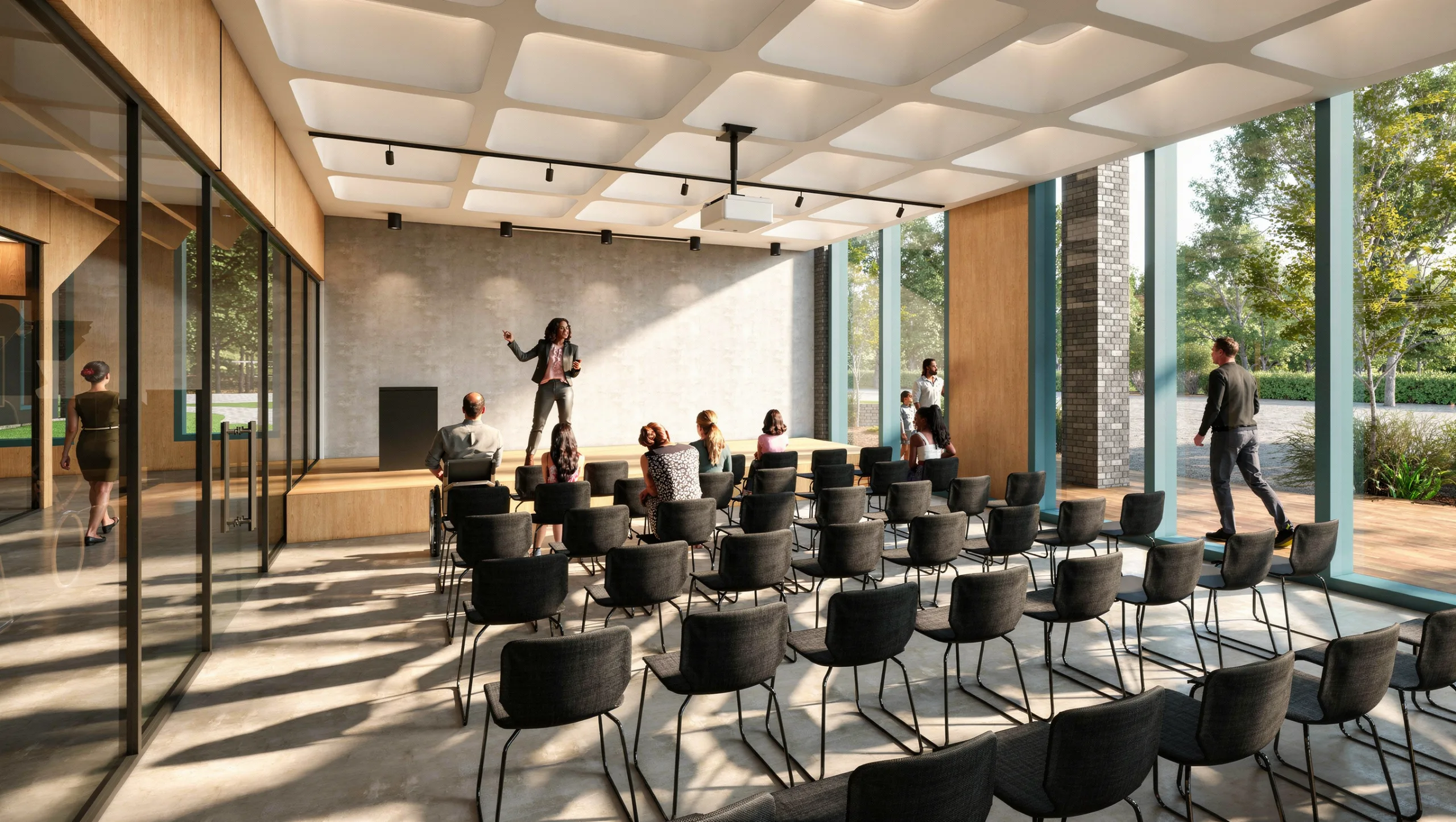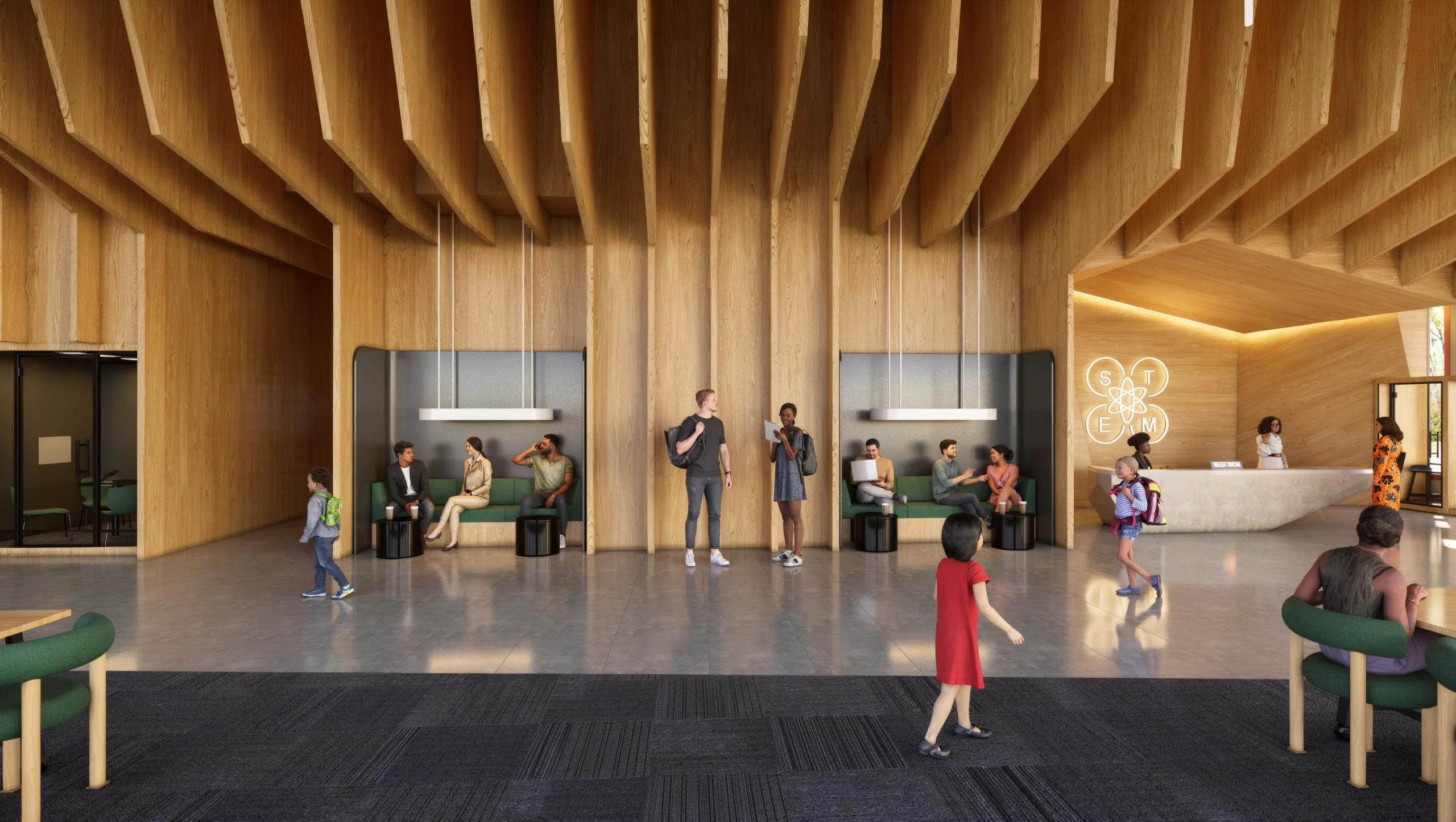 Spaces are designed for accessibility, collaboration, and hands-on exploration—supporting everything from youth workshops to community events, culinary training, and workforce programming. Modular furniture, glass partitions, and warm material palettes encourage both engagement and focus. This adaptable layout supports evolving community needs over time.