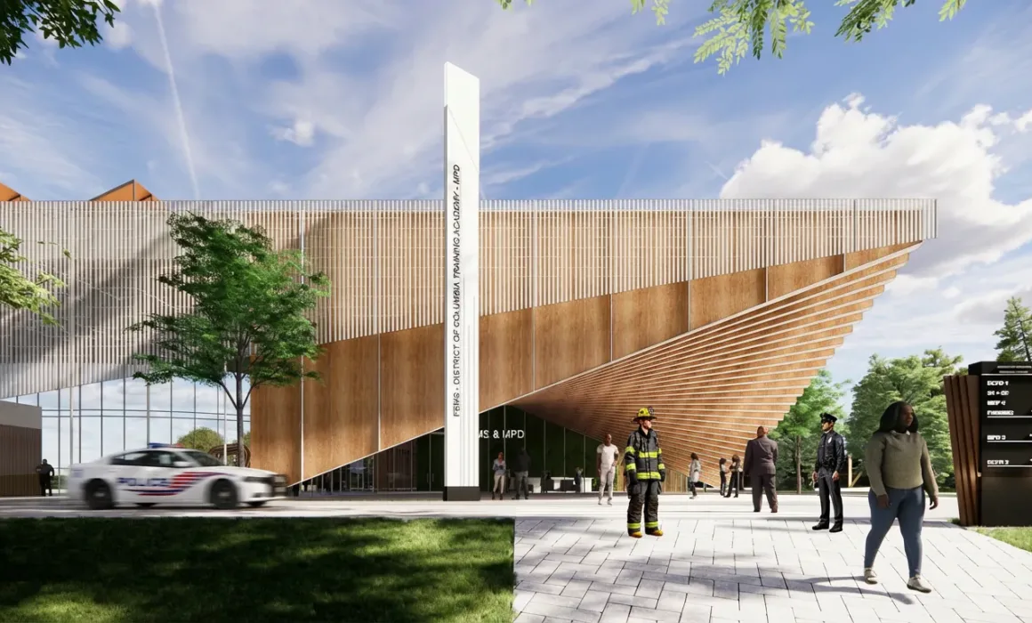 Moya Design Partners developed the conceptual design for a new, integrated training campus serving Washington, DC’s Fire and Emergency Medical Services (FEMS) and Metropolitan Police Department (MPD). This high-performance facility was envisioned as a national model for first responder training—combining operational excellence, resilience, and wellness in a state-of-the-art environment.