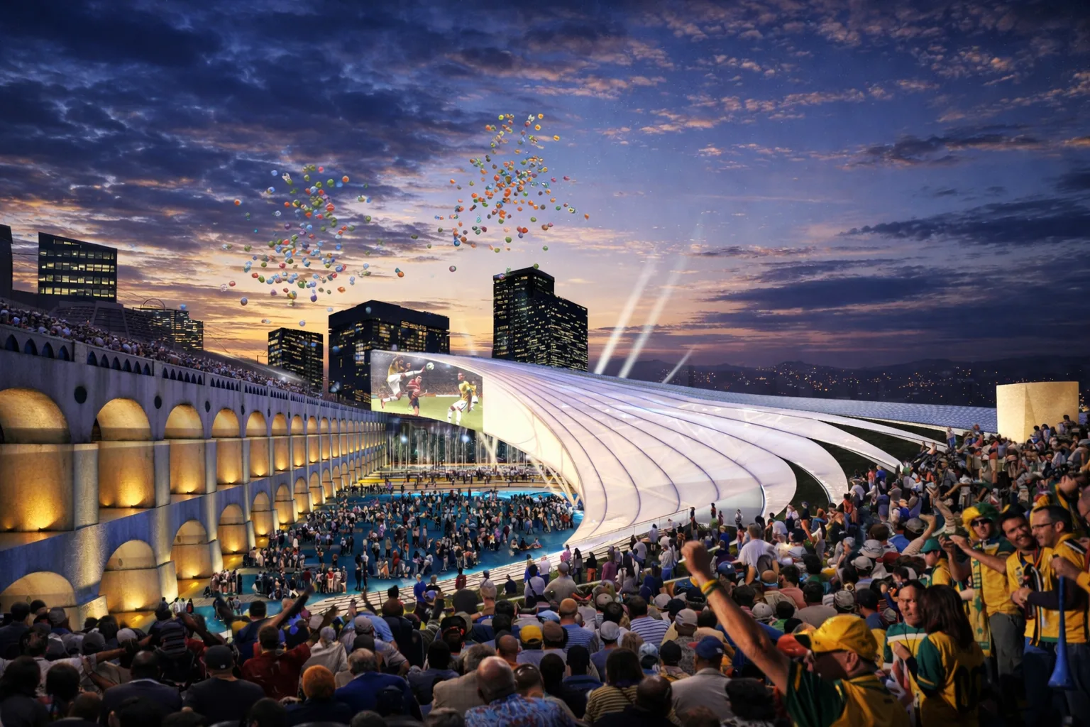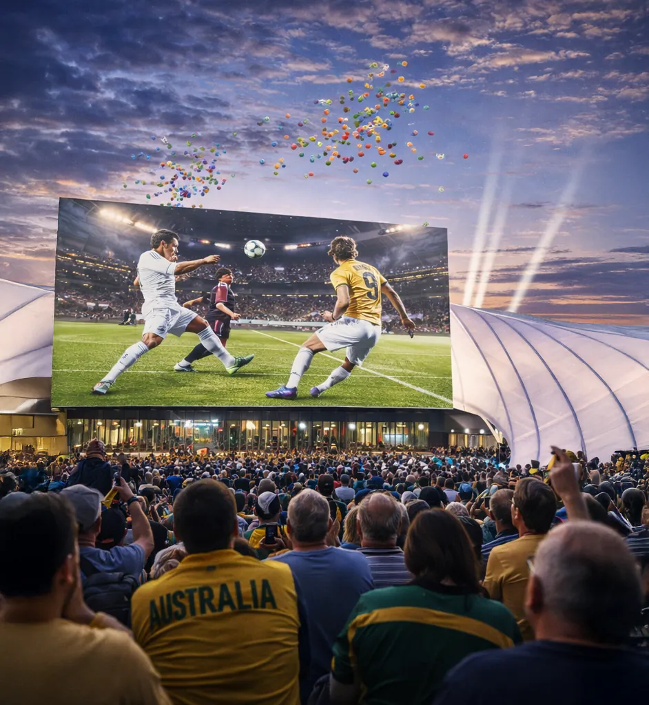 The design strategically positioned the viewing screen as a performance stage accommodating both World Cup broadcasts and live cultural events.